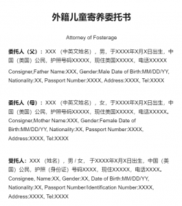 外籍宝宝寄养手续,委托书英文版,公证认证代办